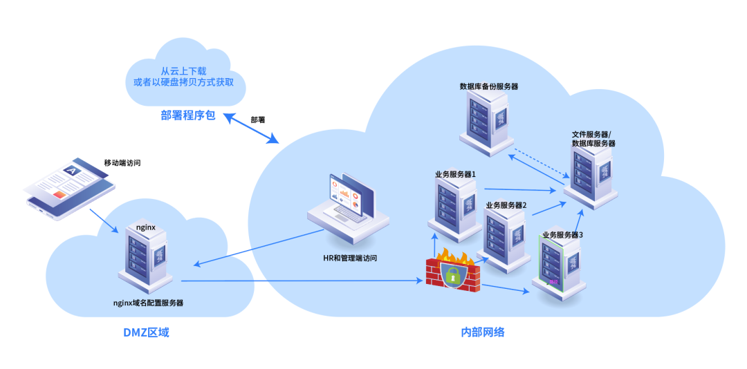 所有HR数据部署在内部服务器或专有云上,通过本地防火墙与安全策略实现全链路防护 ;